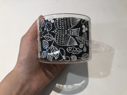 アイスを盛り付けるのにちょうどいいサイズ感と、白い手描き風のイラストがとても可愛いグラスです✨