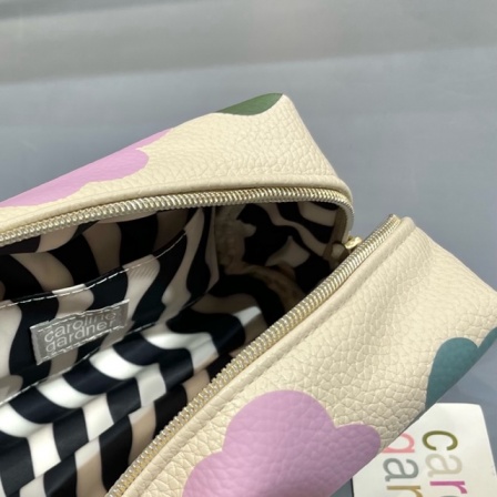 しっかりした作りで大容量、内ポケット付きで機能性も抜群のポーチ。開けてみると、中は違った柄が!!使う度にハッピーになれます♡