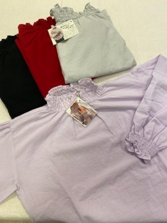 また、ワンピースの下からチラッと見えるシャーリングが美しいブラウスもございます。春夏は一枚でさらりと、秋服は重ね着をして組み合わせをお楽しみ頂けます。一枚あれば通年通して万能ブラウスです!