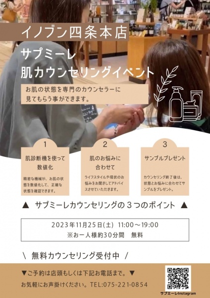 【イベント】11/25 サプミーレ肌カウンセリング