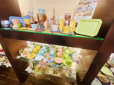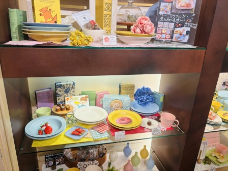 こんにちは。イノブン四条本店2階でございます。ただいま2階の階段前では大人気のsakuzan saraさんのお皿やカップなどの食器をいつもより売り場を拡大して取り揃えております!