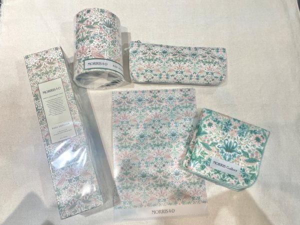 書類を綺麗にまとめておくことができるクリアファイル、コンパクトに文具を持ち運べるペンケースやフレグランスなど、日常的に使うアイテムばかりです。モリスの作品はあなたの毎日を華やかな気持ちにしてくれるでしょう。ぜひお近くにお越しの際はお立ち寄り下さいませ。