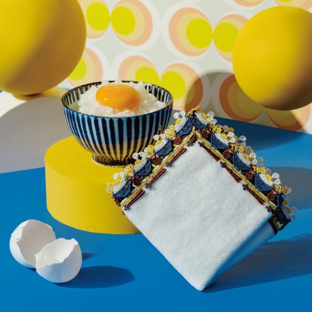 温か~いご飯の上に新鮮ぷるぷるの卵を乗せて...日本の朝ご飯を代表するTKGがハンカチになりました!ちょっとくすっと笑えるハンカチで万人受け間違いなし!ご自分用にもプレゼント用にもオススメです🍳