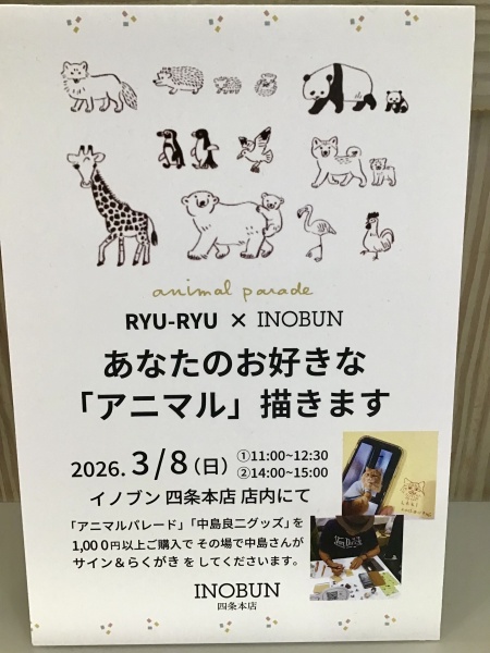 イラストレーター 中島良ニさんのサイン&らくがきをして下さいます。