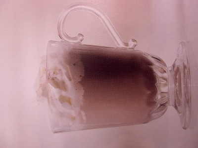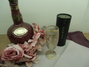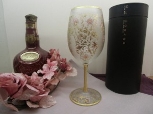 幻想的にぼかしが入ったようなグラスに、かなり繊細な花と唐草の模様が転写されています。