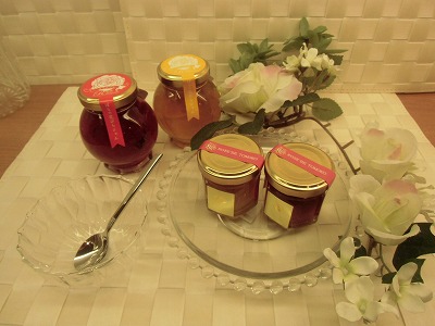 シロップとジャムは美しい薔薇の花びらが ふわふわ~と浮いていて、
