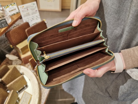 岩村:えーと、次の日の準備をするときに、バッグやお財布を用意すると思うんですけど、そのときに、お財布明日コレ使うんだ~!っていう、気分が上がる要素になればいいなって思います。それをお助けできるお財布が、イノブン四条本店1階にはございます!