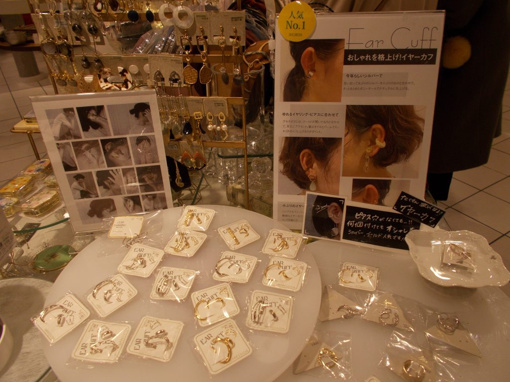 イノブン京橋店ではこのようにたくさんのイヤーカフを取り揃えております。