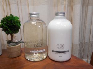 ラベンダーの精油に、ローズマリー油などをブレンド。