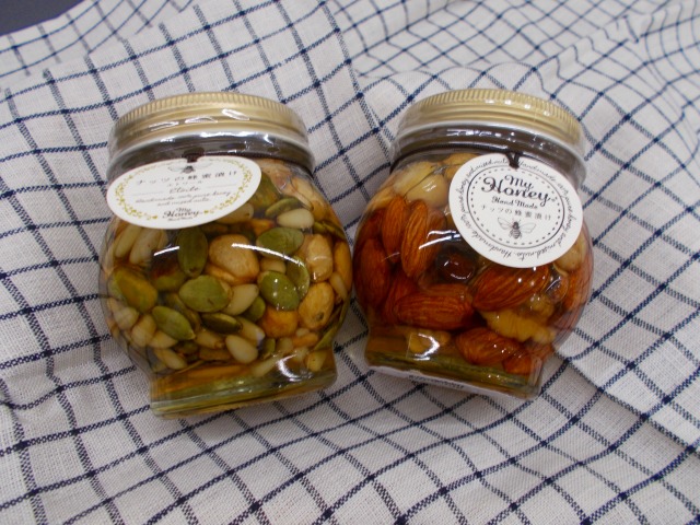 程よい甘さの蜂蜜にアーモンド、くるみ、カシューナッツ、マカダミアナッツが