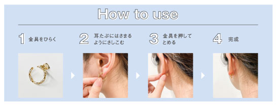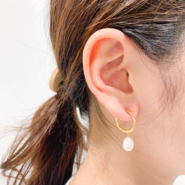 このように耳たぶに挟んでいるのでピアスホールがない方もフープデザインを楽しめるアクセサリーになっています!