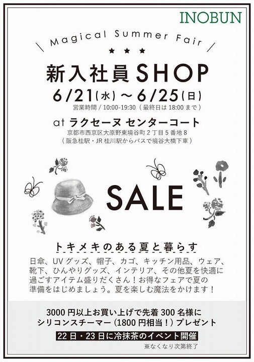 本日は、毎年恒例の新入社員ショップのお知らせをさせて頂きます。