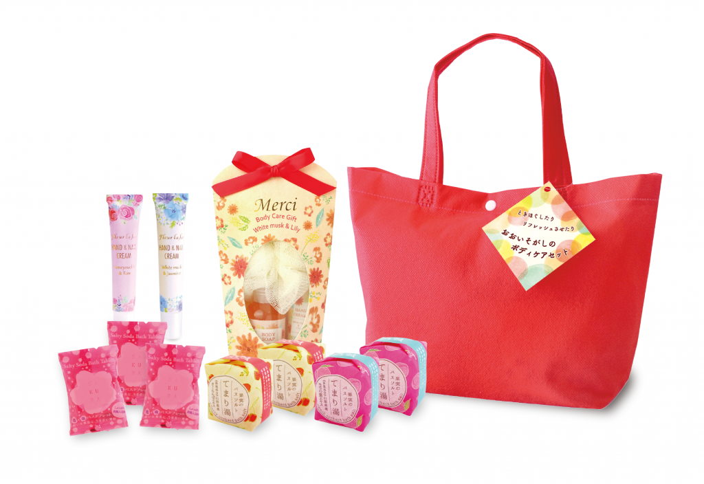 入浴剤、ボディソープ、ハンドクリームなどが詰まったお得なボディケアセットです。