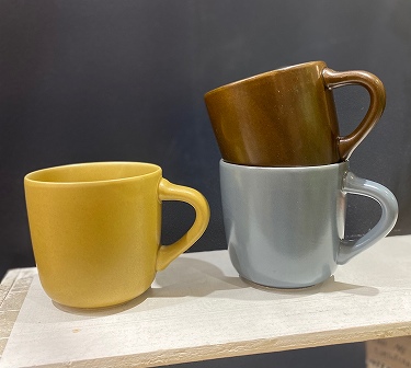 マットな質感にこだわった落ち着きのある釉薬がビンテージレトロ感のある風合いで、思わず手に包み込みたくなるフォルムとシンプルな無地柄で日常使いにピッタリ。コーヒー、紅茶はもちろんスープマグとしても◎