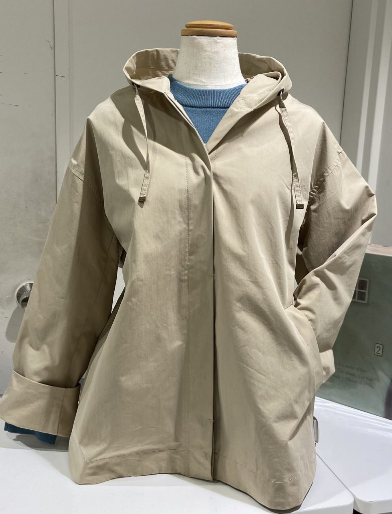 春に大活躍のフ-ドミディ-コートは軽くて丁度良い丈感です。
