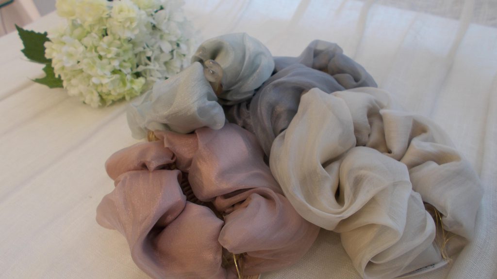 オーガンジーシュシュはよく見かける方も多いのではないでしょうか?私自身、色々なお店で販売しているのを見かけて、つけてみたいなぁと思っていたのですが、シュシュでくくるほど髪の毛が長くないので諦めていました(´;ω;`)