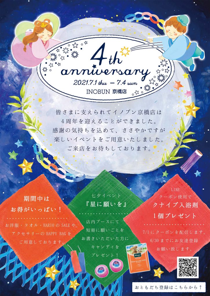 この度イノブン京橋店は皆さまに支えられて、4周年を迎えることができました。
