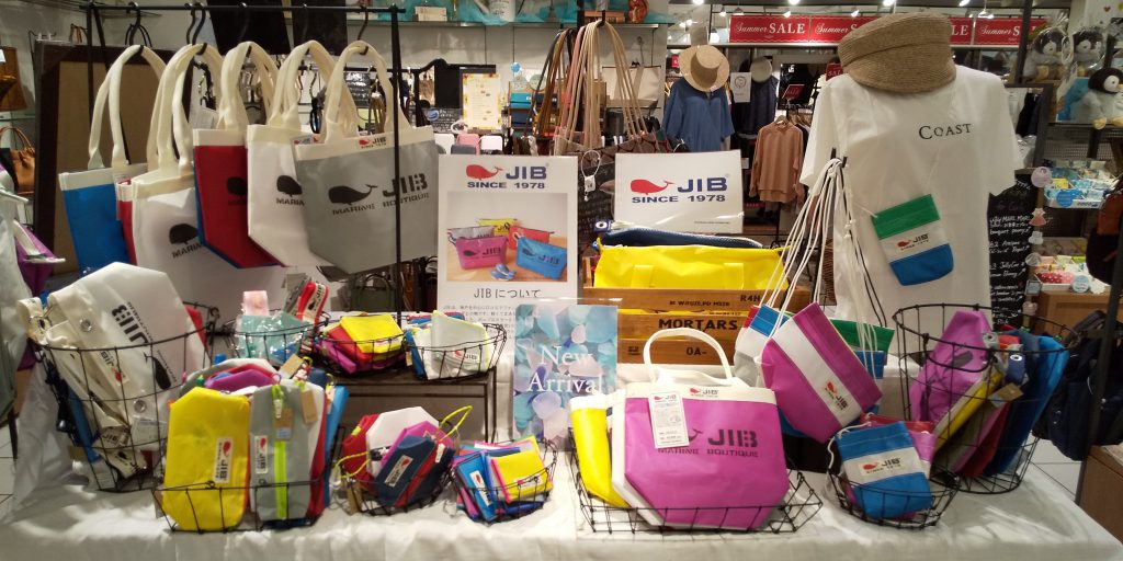 JIBは、神戸を中心に口コミでファンが広がっているハンドメイドのバッグと小物です。軽くて丈夫なヨットのセイルクロスをメイン素材にした、ポップなカラーとシンプルなデザインが特徴です。長年使い込むと柔らかい風合いになるのも人気の理由の一つです!