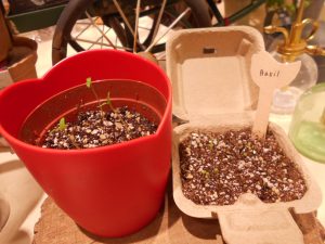 種をまいて、しばらくまだかまだかと待っていたのですが、ようやく芽が出ました(^^)