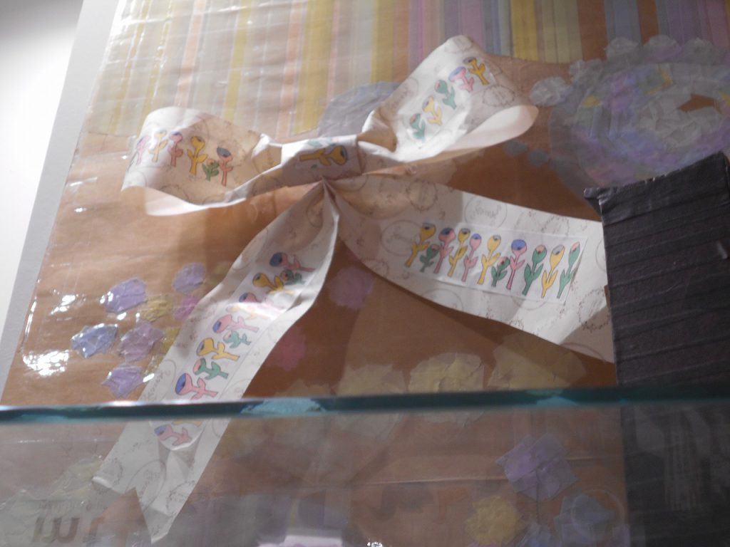 紙で作ったリボンに貼り付けてみたんですが、めっちゃ可愛い
