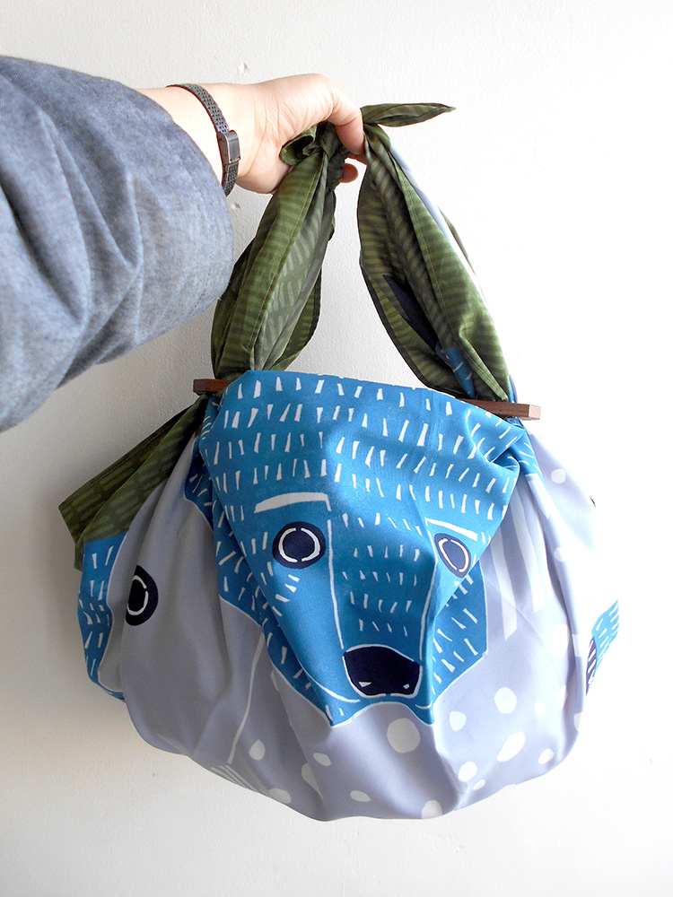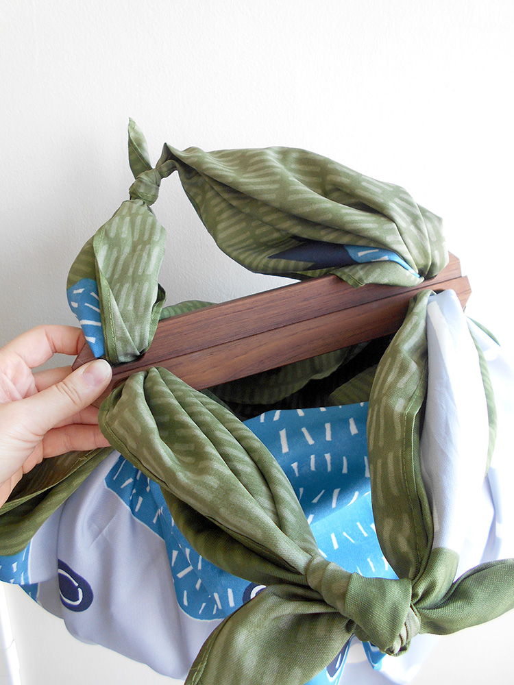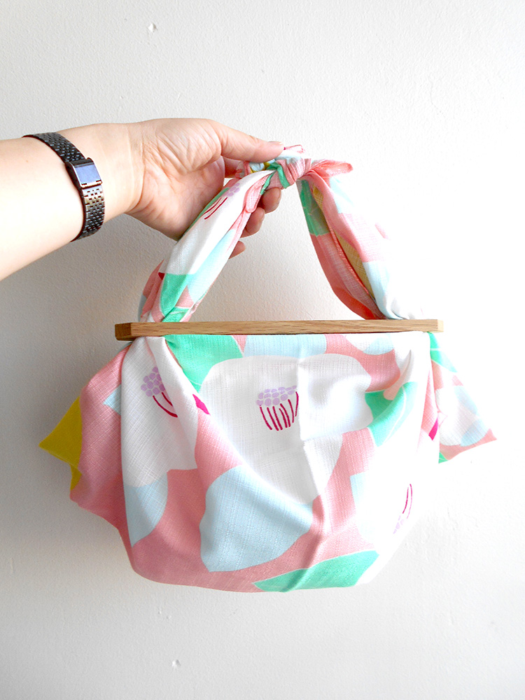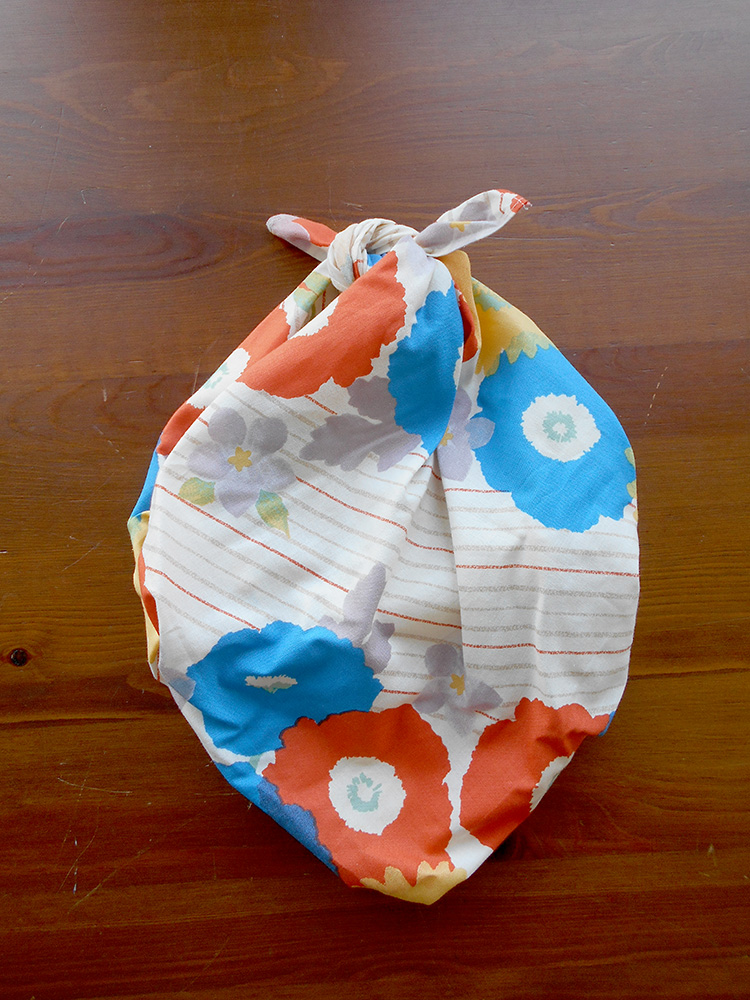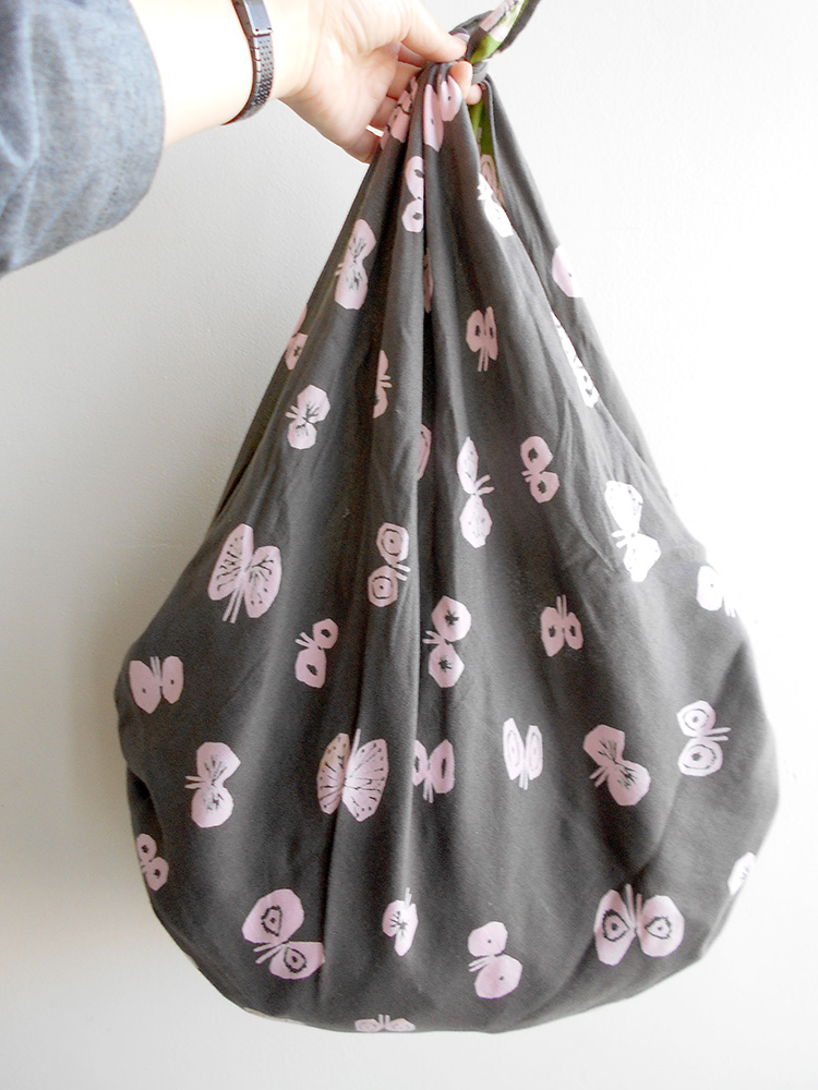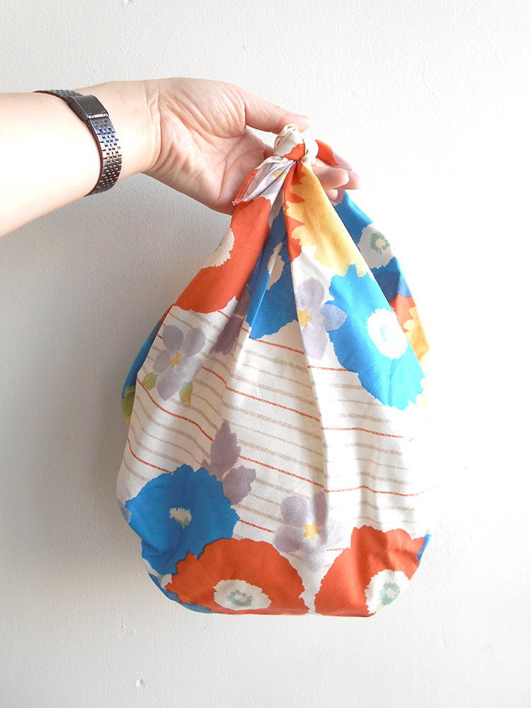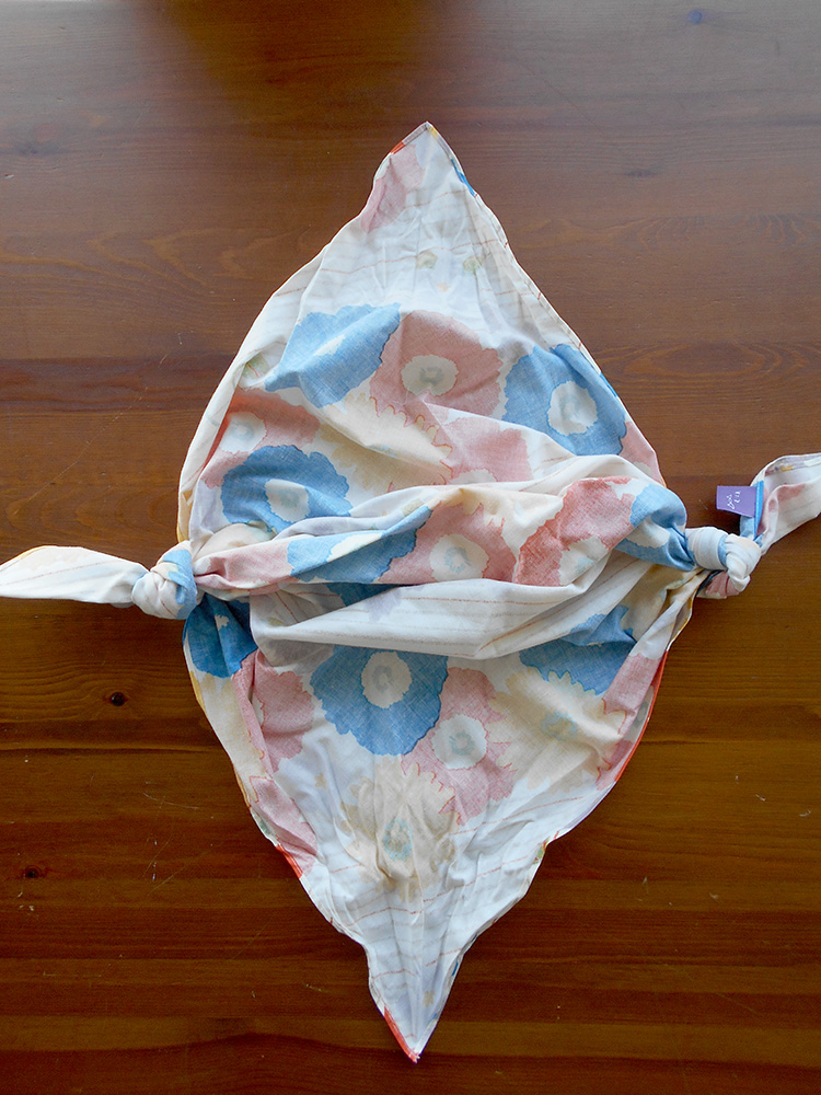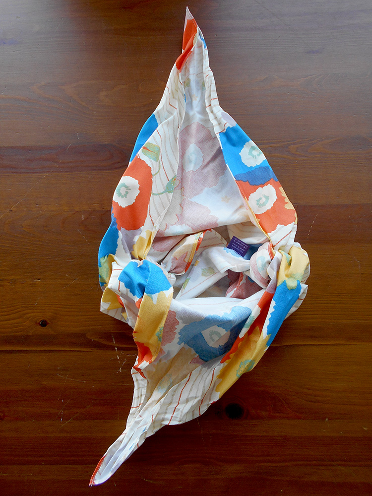 器具がなくても、結ぶだけでもバッグになるんですよ。