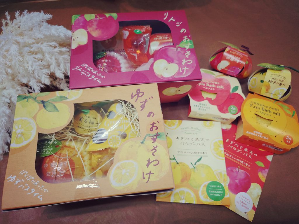 こちらのギフトボックスは、それぞれの香りの入浴剤やスポンジなど5つセットと大ボリューム!