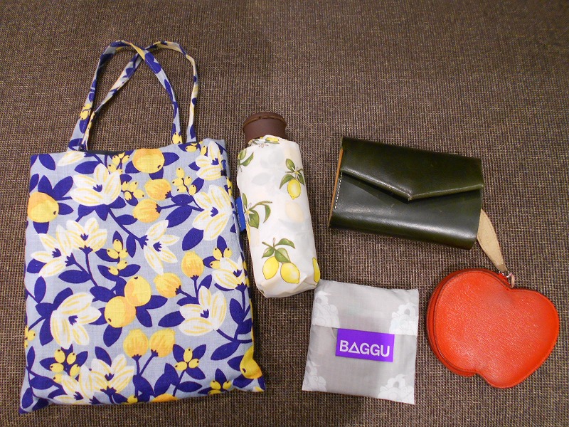 お財布、折り畳み傘、エコバッグ、定期入れ、携帯電話