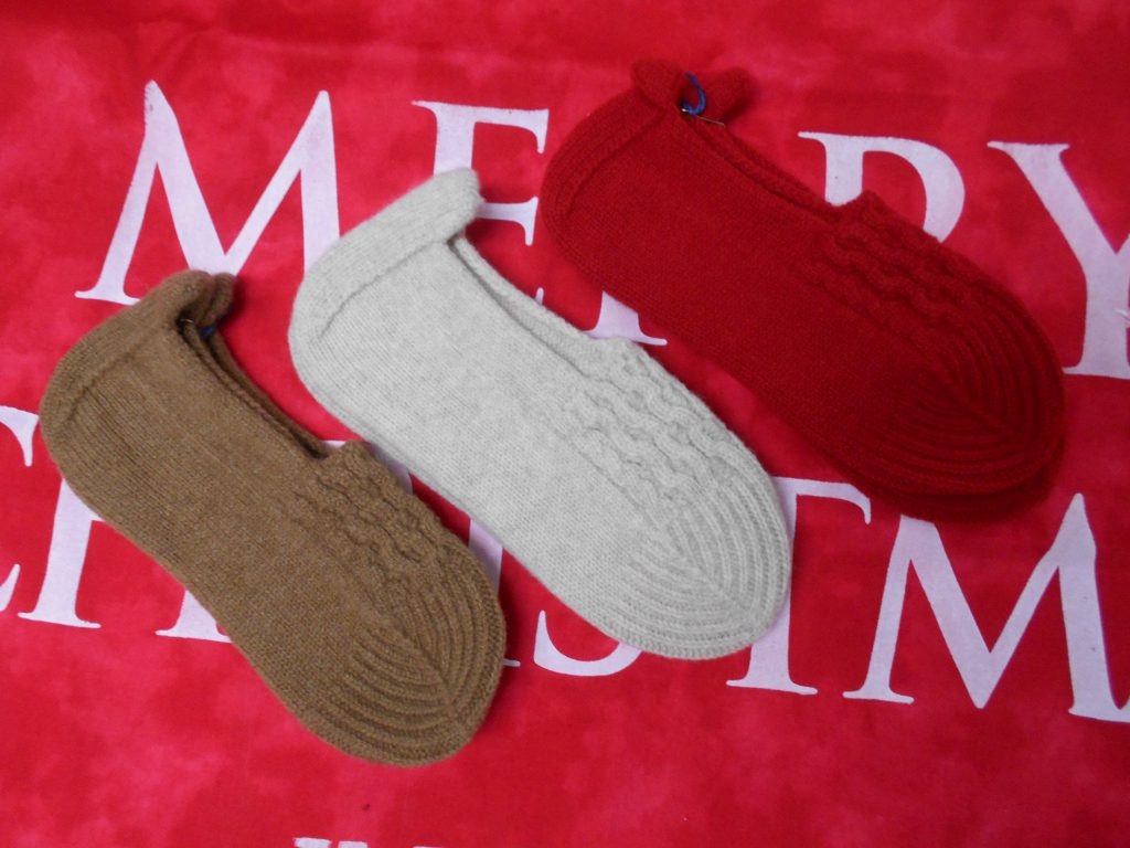 だんらんの日々を過ごすクリスマスのモチーフをジャガード機で編んだソックス。