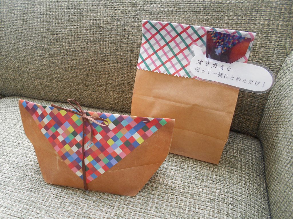上の紙袋はこの折り紙を使っています。