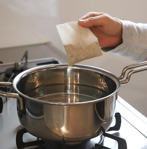 お鍋に水とだしパックを入れ、沸騰したら弱火で5分~7分。