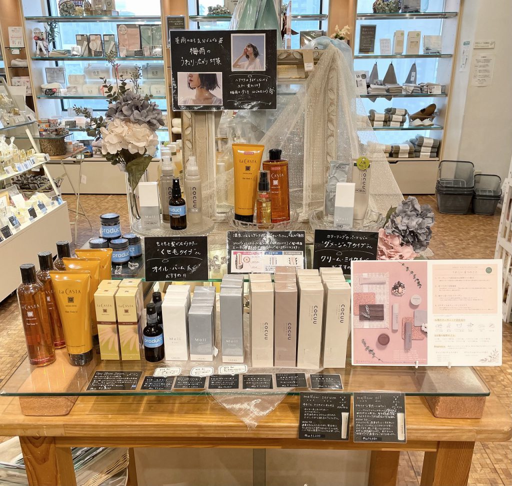天満橋店ではそんな梅雨のヘアトラブル対策商品を取り揃えております。