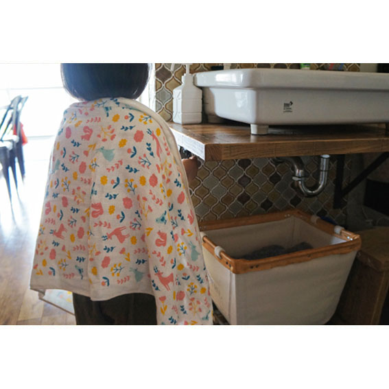 このタオルは4重ガーゼ素材でできていて、使うほどにふんわりと肌になじむような優しい質感です。