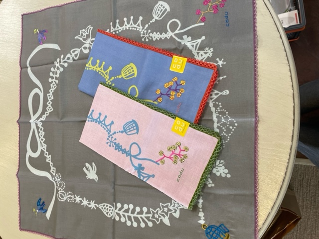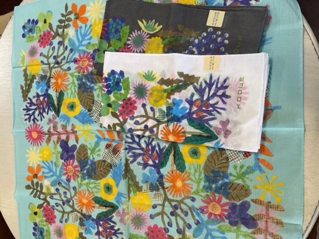 本日は汗を拭くのはもちろん、お食事中のナプキン、収納の目隠しとして様々な事にお使い頂ける素敵なハンカチをご紹介いたします