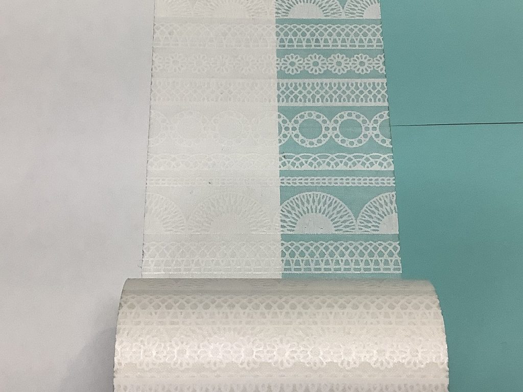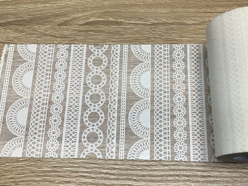 こちらほ木目に貼ってみたところ・・木目もレースも両方見れていいですね。
