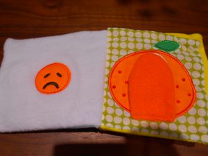 いろんなお顔がかくれんぼしてる布絵本です♪