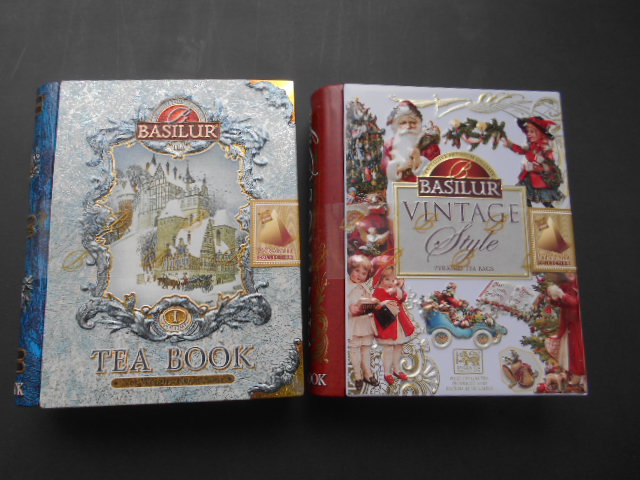 右(サンタさん)→ミニチュア TEA BOOK ヴィンテージ/ストロベリー&バニラ&クリームフレーバー