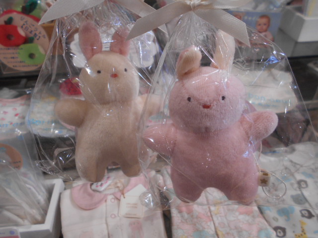 うさぎにはにんじん、くまにはお魚のラトル付きです。