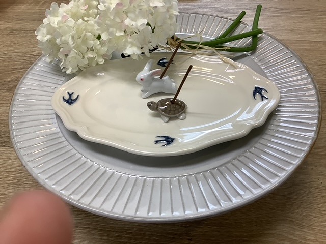 火を使いますので、お香に一番近いお皿は不燃性の物をお使いください。