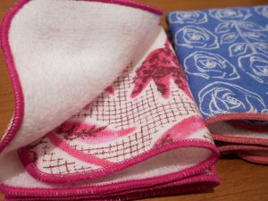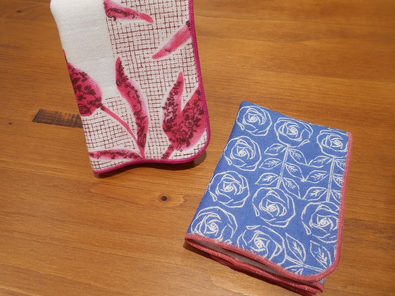 プリント面がガーゼ、裏面が無撚糸パイルのハンカチです。