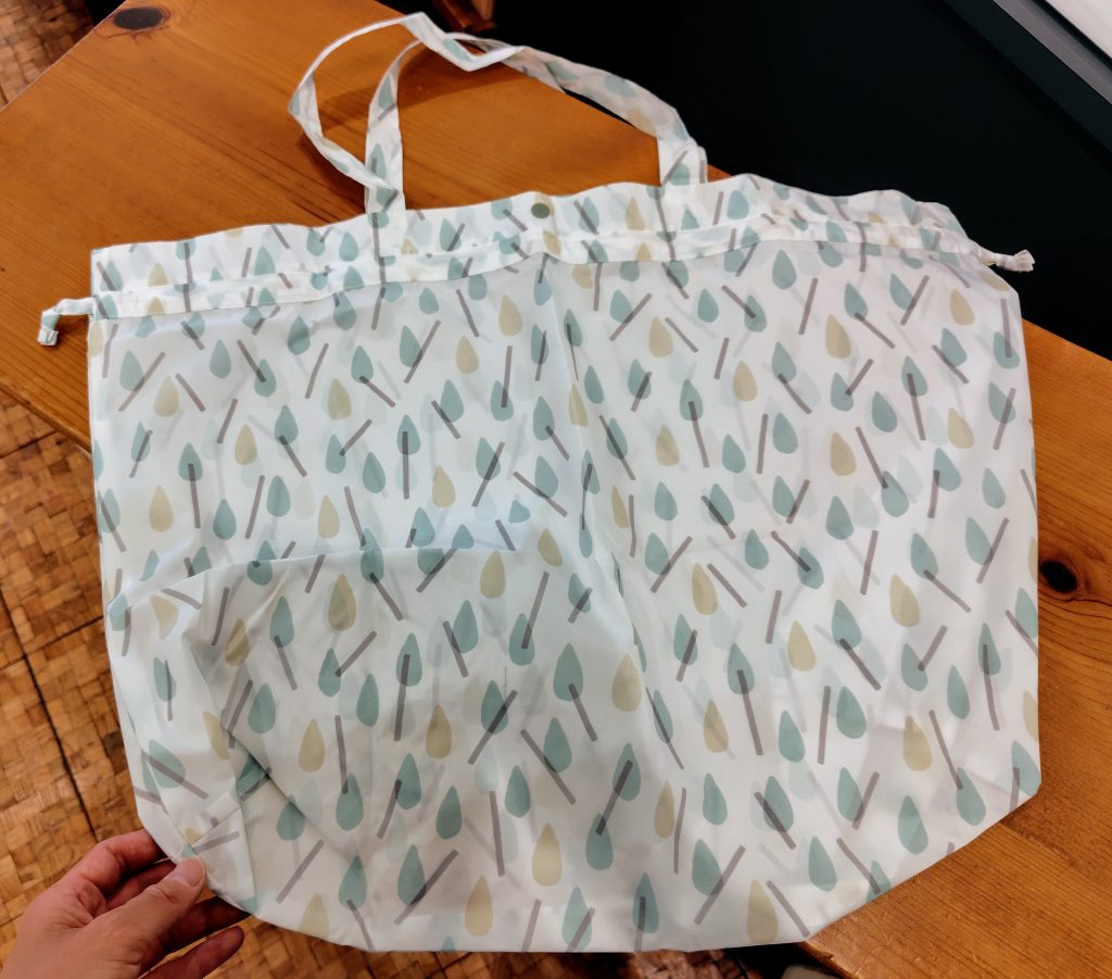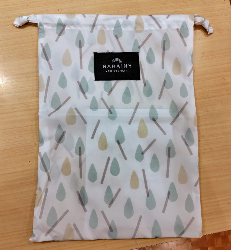 レインコートをしまう用の巾着と、バッグなど手荷物を入れられる大きめサイズのエコバッグ付き!