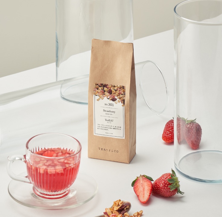 フレッシュなフルーツをドライフルーツにし、果実本来の風味と甘さを閉じ込めた、ノンカフェインの新食感フルーツティー。