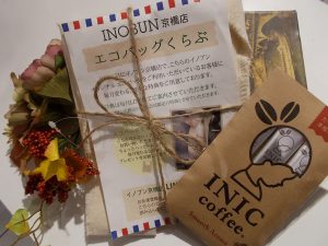 イノブンオリジナルのエコバッグを持ってお買い物頂くと、嬉しいプレセントがもらえます。