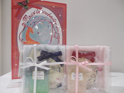 中身はハンカチに他に、入浴剤やボディーミストなど様々です^^