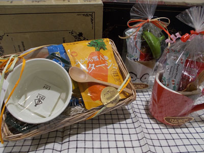 スープカップとスープが入ったギフトや、マグカップギフトもおります