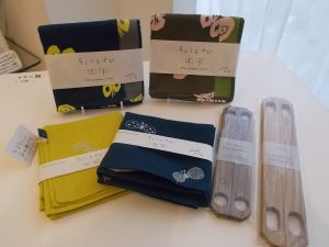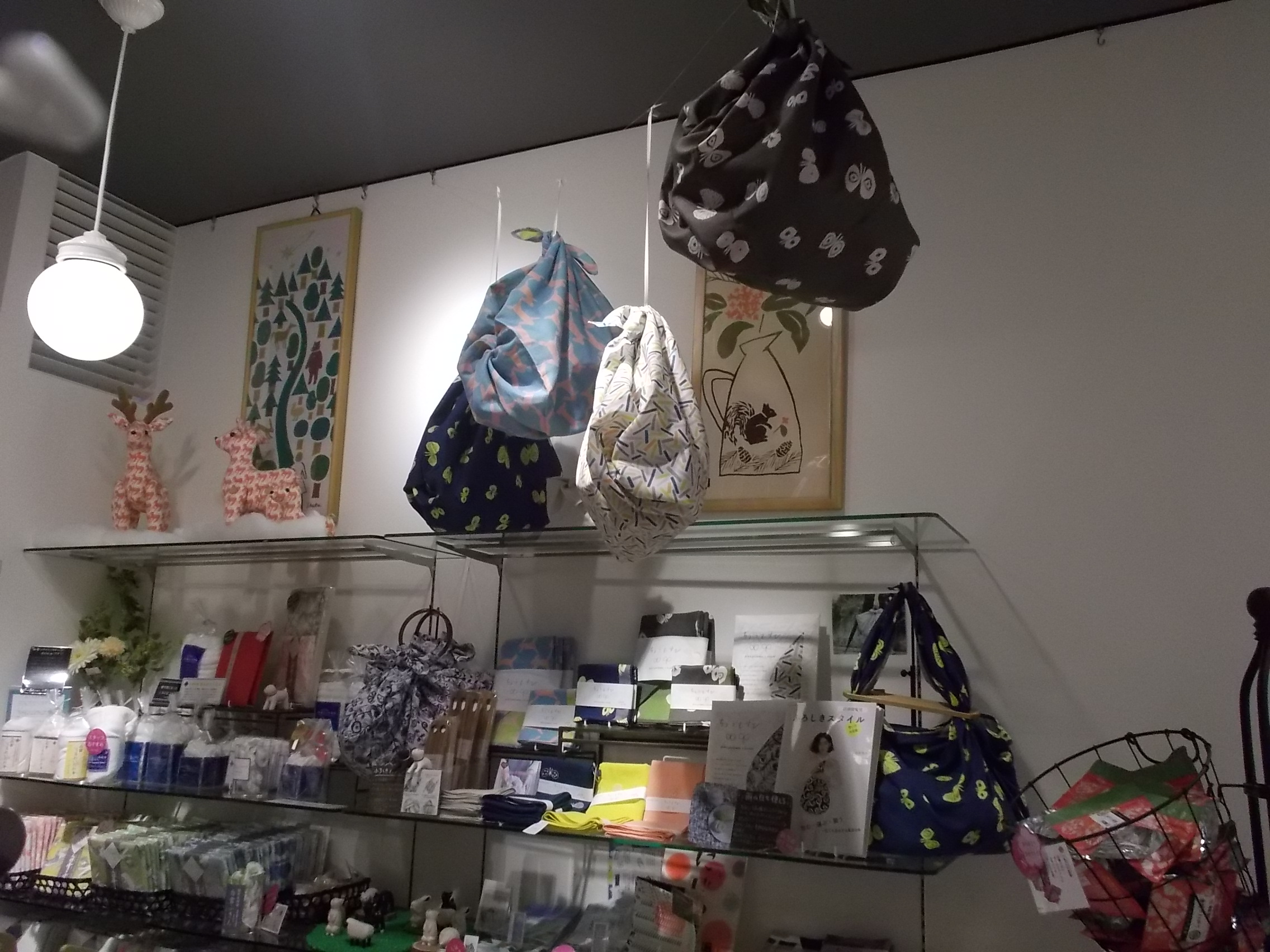 風呂敷があっという間にバックになる優れもの、ふろしきパッチン2300円+税、ミニ1800円+税もご用意しています。
