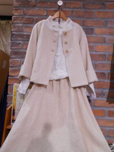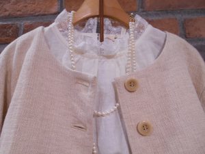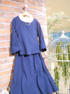 何ともきれいなお色目の、コットン&リネンのジャケットとスカート。