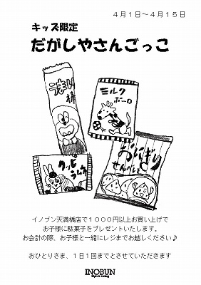 4月1日~15日まで、お買い上げ税込1000円以上で