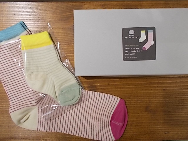 ベビーとママとパパがお揃いで履ける靴下が3足セットと、