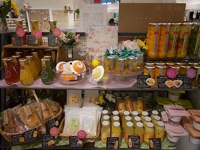 店内のコンフェ売場では熱くなってきたこの時期にぴったりなフルーツのコンポートや柑橘系の商品を取り揃えています。