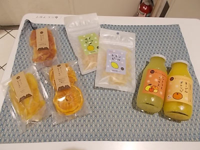 愛媛の柑橘を使用したドライフルーツ、かんきつピール、そしてかんきつジュース。